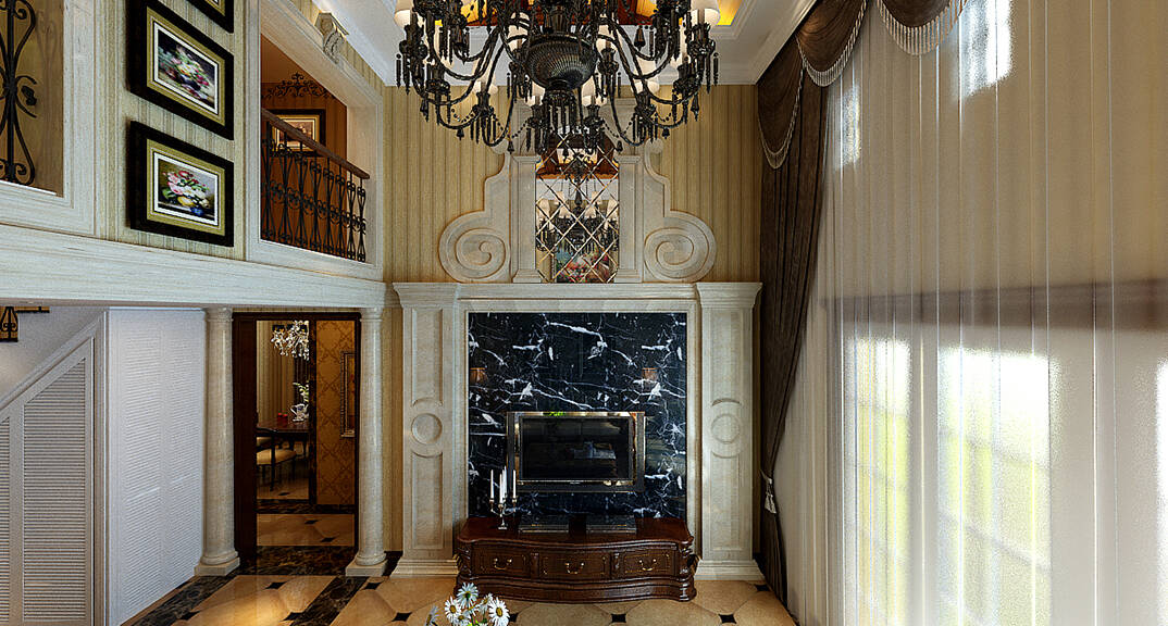 中冶圣喬維斯268㎡別墅客廳美式風格裝修案例效果圖