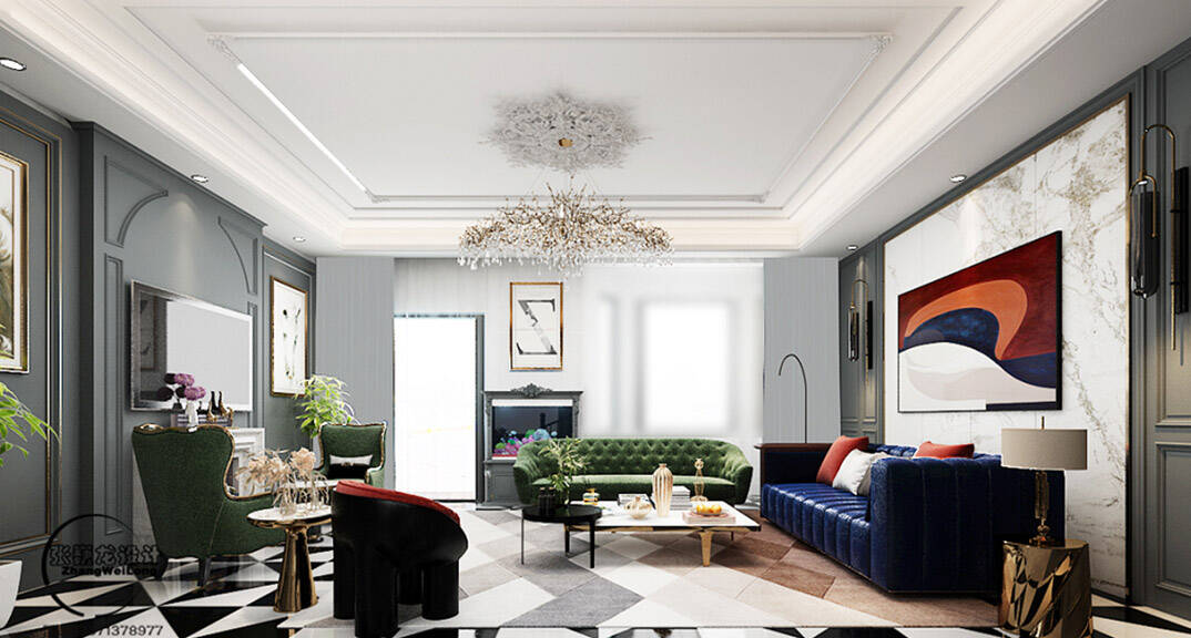 荷塘月色320平別墅輕奢風格裝修-客廳