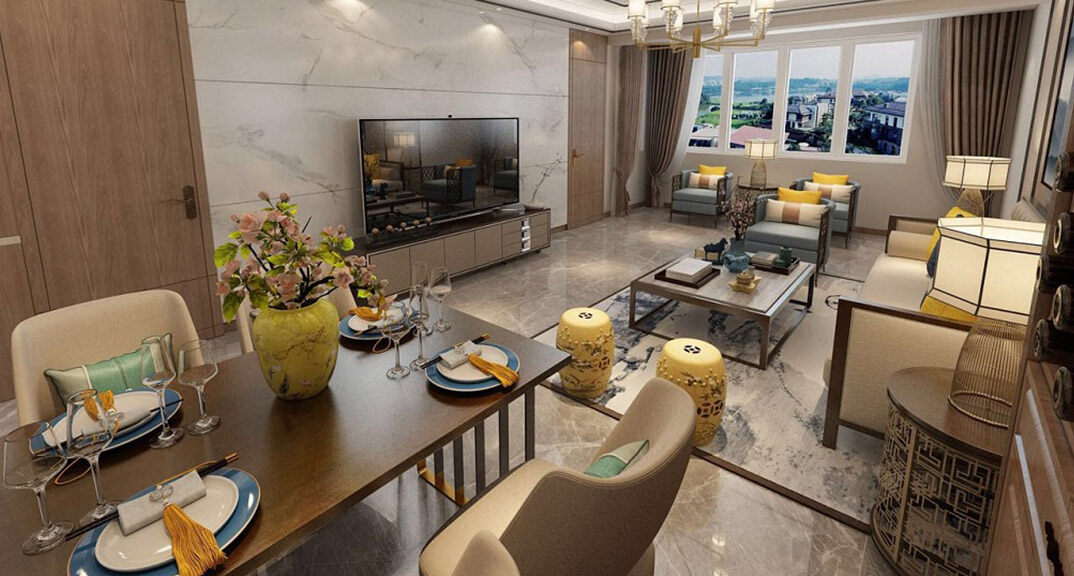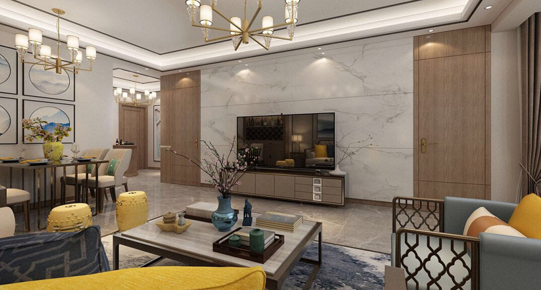 恩馬文景園144㎡二室一廳客廳新中式風(fēng)格裝修效果圖