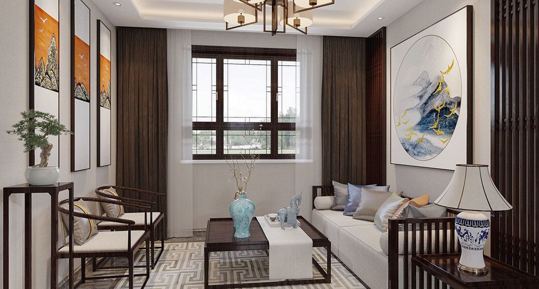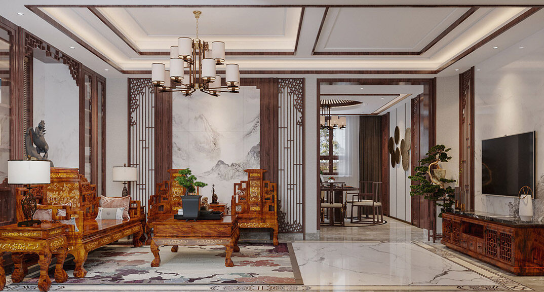 中歐金茂墅別墅中式風(fēng)格客廳裝修效果圖