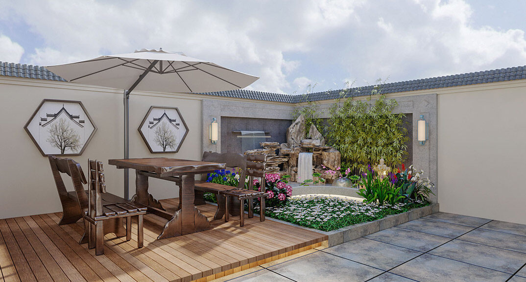 中歐金茂墅別墅中式風(fēng)格花園裝修效果圖