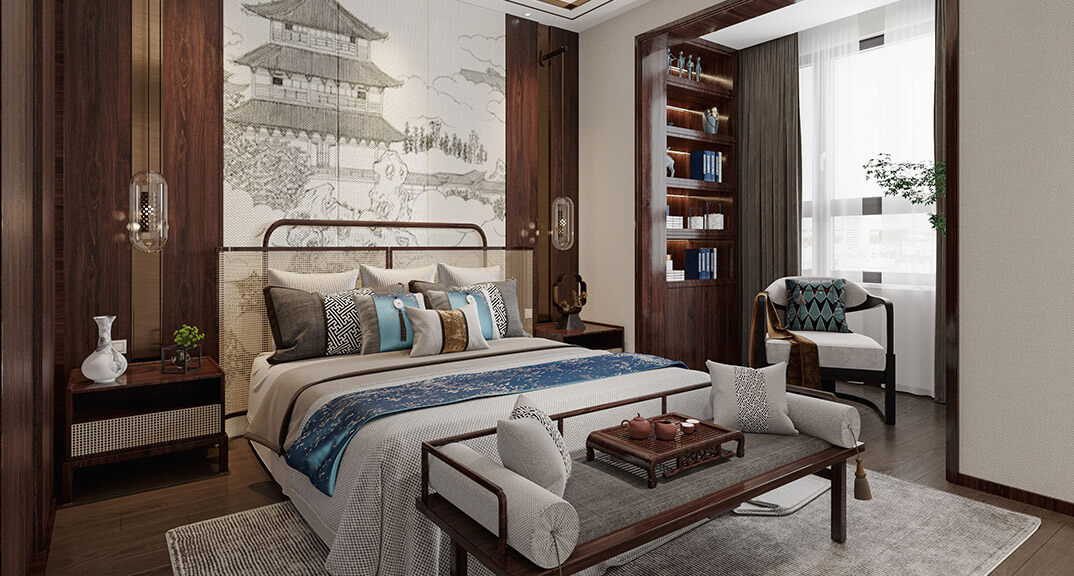 中歐金茂墅別墅中式風(fēng)格臥室裝修效果圖
