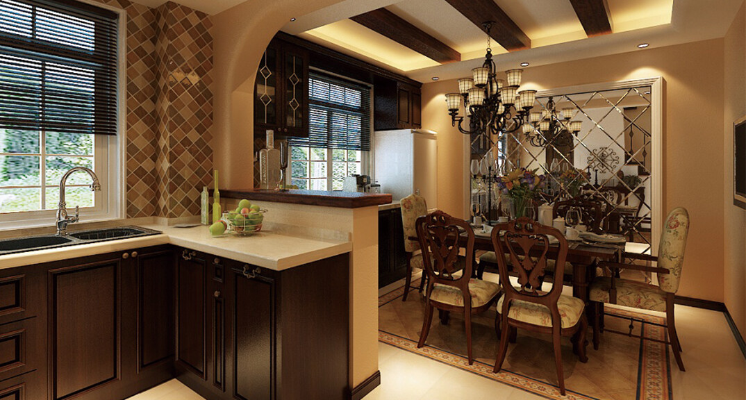 泓久花園212㎡別墅廚房餐廳美式風(fēng)格裝修案例
