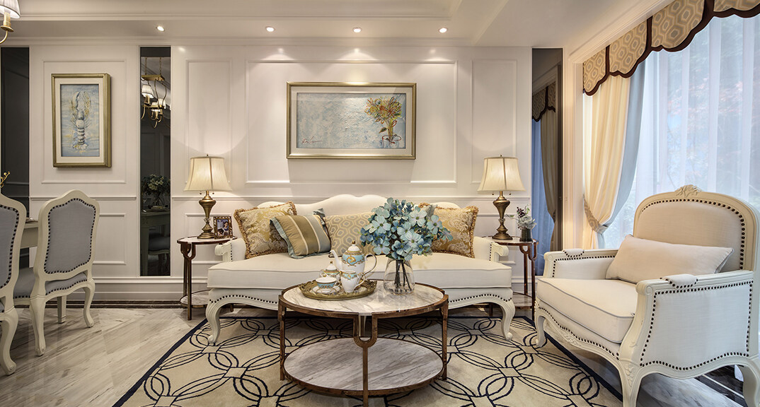 桃李芳菲2室2廳1廚2衛(wèi)126㎡客廳美式風(fēng)格裝修效果圖