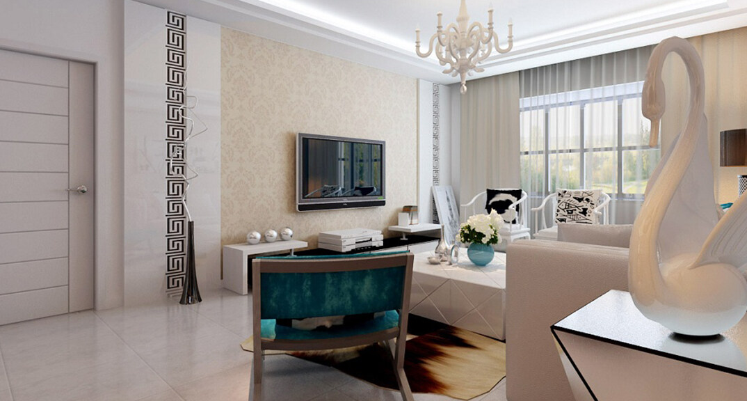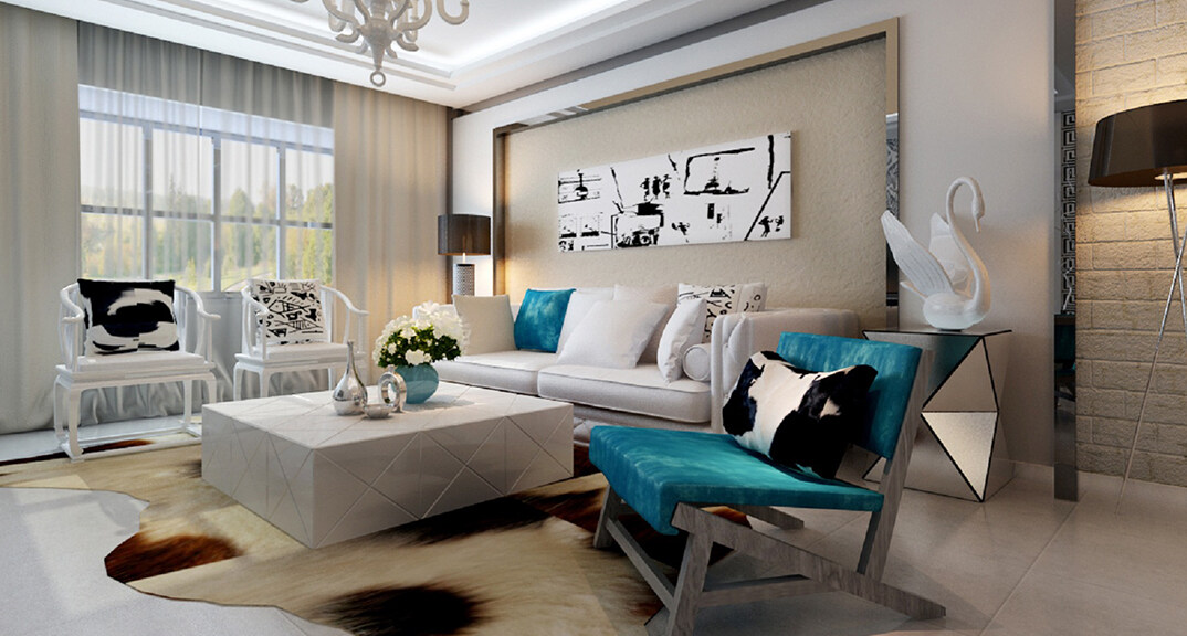 曉港名城146㎡三室一廳客廳新中式風(fēng)格裝修案例效果圖