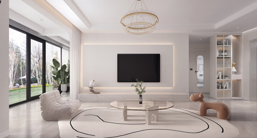 青建依山半島103㎡三室兩廳客廳電視簡(jiǎn)約風(fēng)格裝修案例效果圖