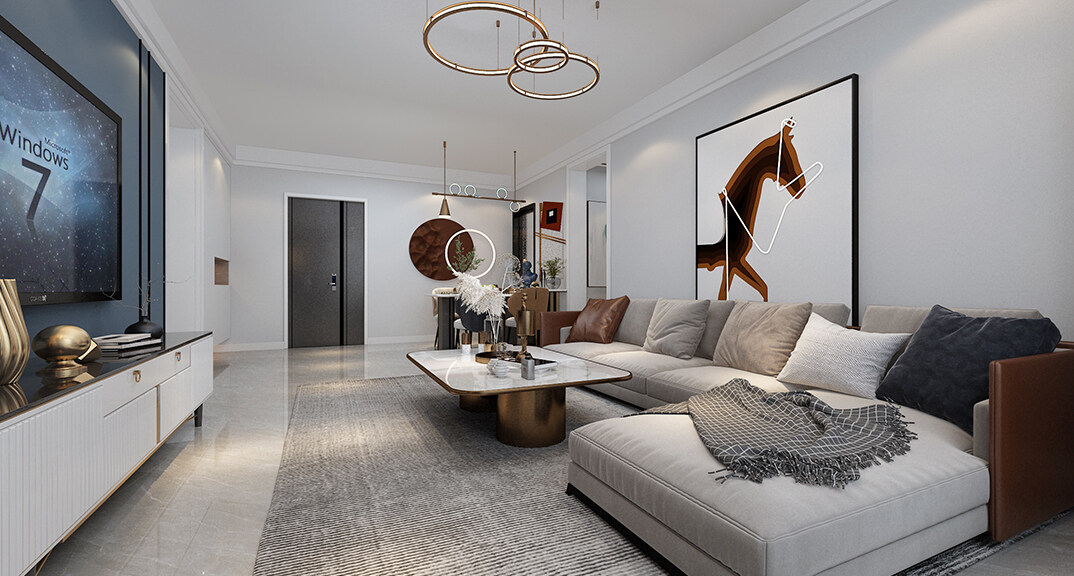 磊鑫伊頓陽光125㎡三室二廳客廳輕奢風(fēng)格裝修案例效果圖