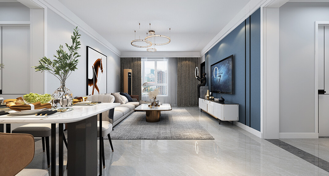 磊鑫伊頓陽光125㎡三室二廳客餐廳輕奢風(fēng)格裝修案例效果圖