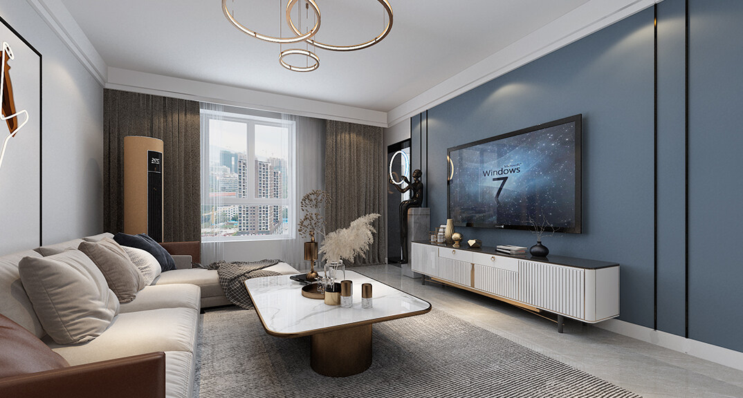 磊鑫伊頓陽光125㎡三室二廳客廳電視輕奢風(fēng)格裝修案例效果圖