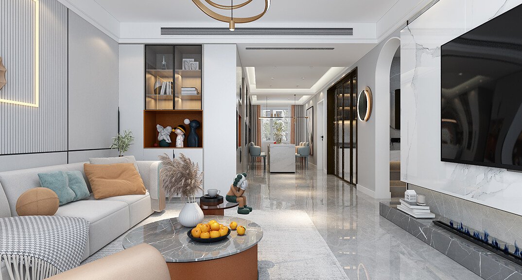 中海藍(lán)庭106㎡三室兩廳客廳輕奢風(fēng)格裝修案例效果圖