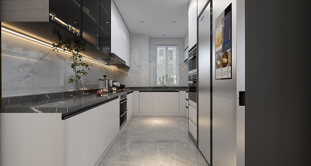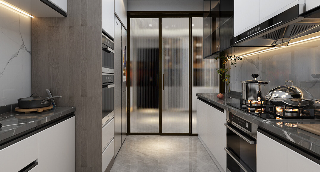 中海藍(lán)庭106㎡三室兩廳廚房輕奢風(fēng)格裝修案例效果圖