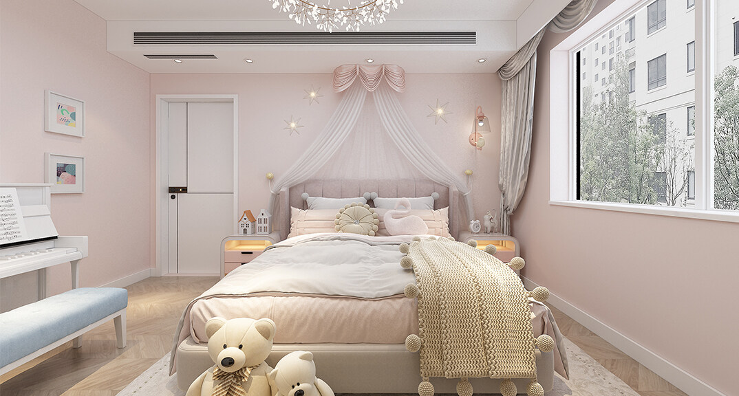 中海藍(lán)庭106㎡三室兩廳女兒房輕奢風(fēng)格裝修案例效果圖