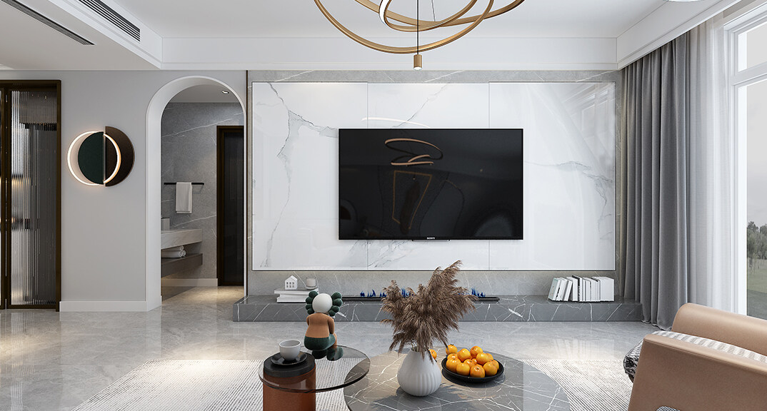 中海藍(lán)庭106㎡三室兩廳客廳電視輕奢風(fēng)格裝修案例效果圖