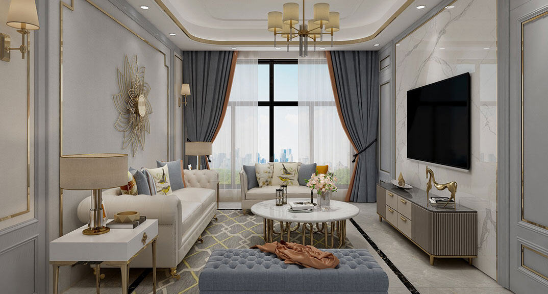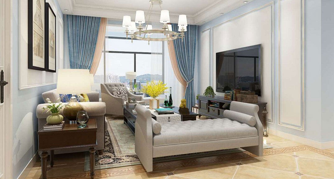 裕升華庭123㎡三室兩廳客廳美式風(fēng)格裝修案例效果圖