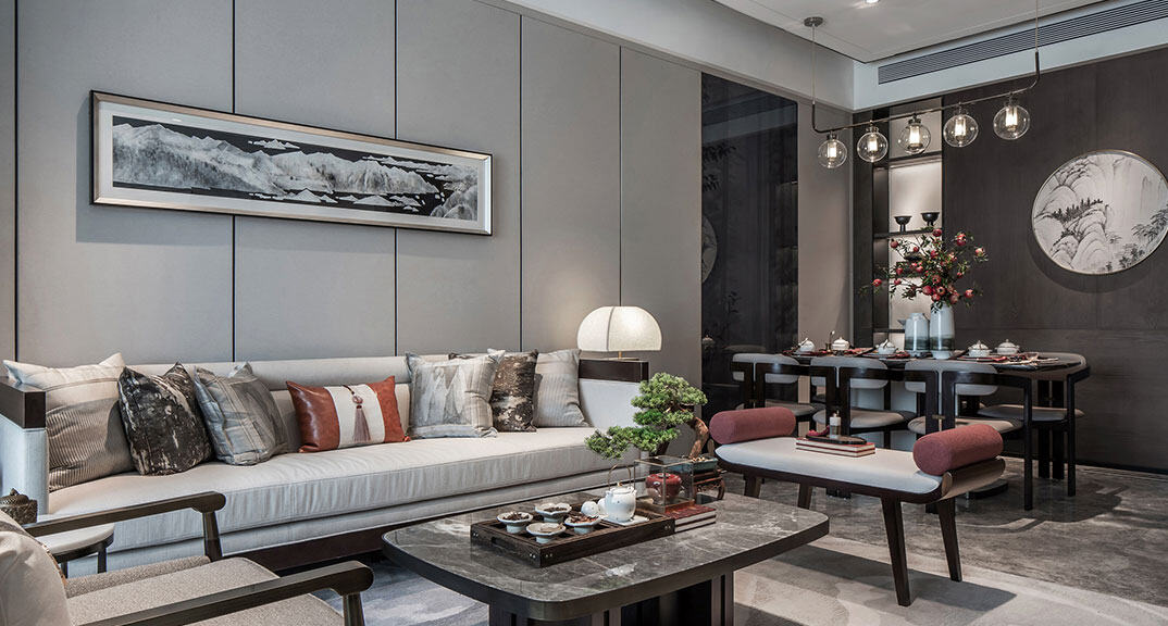 依云四季138㎡四室兩廳客廳新中式風(fēng)格戶(hù)型研發(fā)案例效果圖