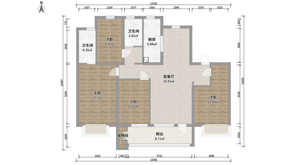 依云四季138㎡四室兩廳戶(hù)型平面布局圖