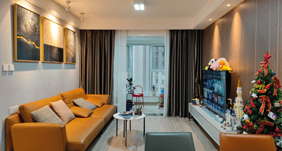 卓越皇后道90㎡三室兩廳客廳輕奢極簡(jiǎn)風(fēng)格裝修實(shí)景效果圖