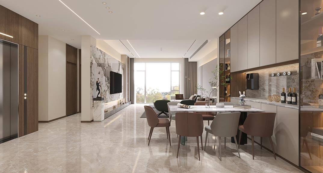 紅島府260㎡別墅客餐廳現(xiàn)代極簡(jiǎn)風(fēng)格裝修案例效果圖