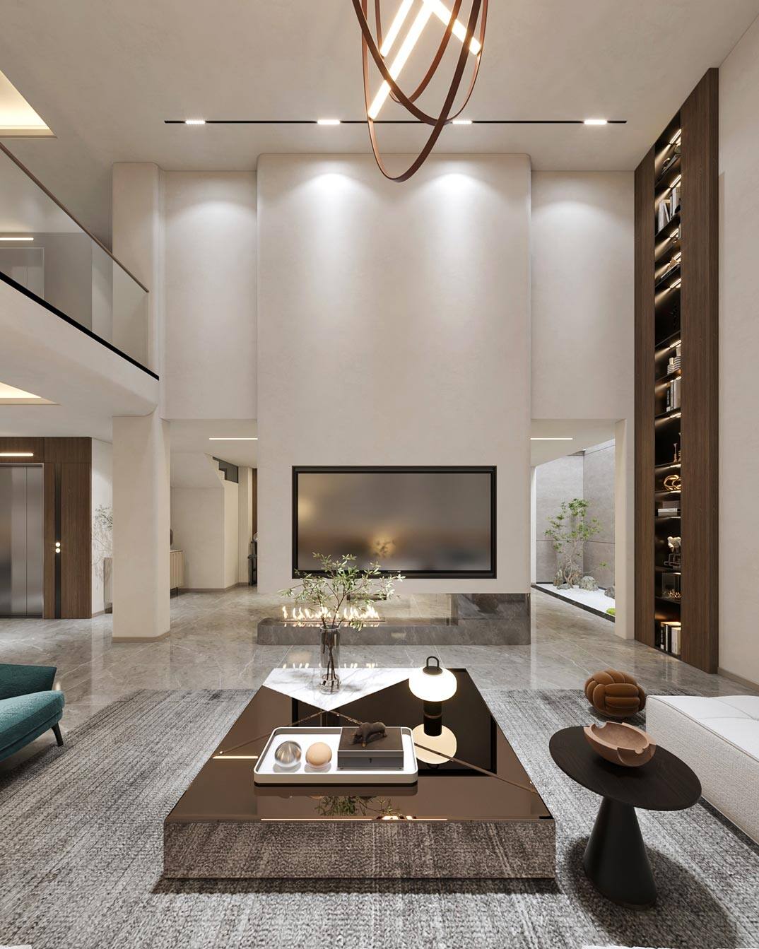 紅島府260㎡別墅客廳現(xiàn)代極簡(jiǎn)風(fēng)格裝修案例效果圖