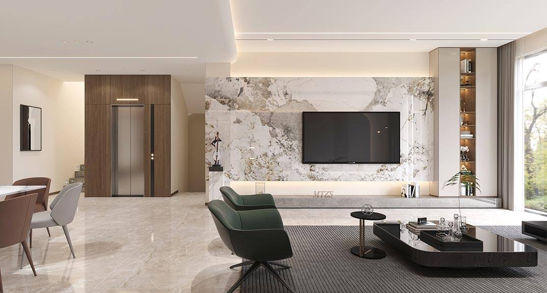 紅島府260㎡別墅客廳電視現(xiàn)代極簡(jiǎn)風(fēng)格裝修案例效果圖