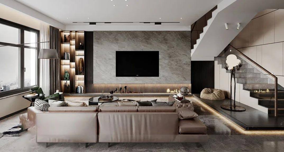 月?;▓@220㎡四室兩廳客廳電視現(xiàn)代簡約風(fēng)格裝修案例效果圖