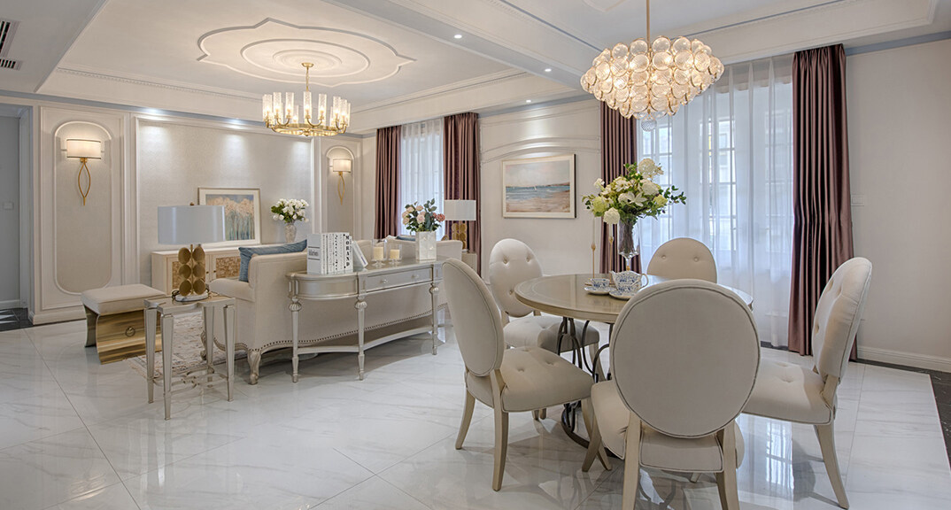 青特星城119㎡三室兩廳客餐廳簡歐風(fēng)格裝修案例效果圖