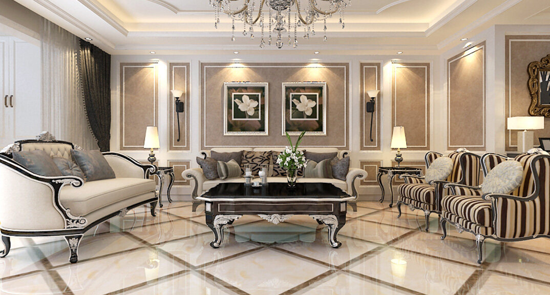 魯潤(rùn)靜園234㎡四室兩廳客廳沙發(fā)簡(jiǎn)歐風(fēng)格裝修案例效果圖