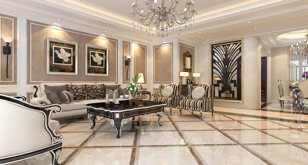魯潤(rùn)靜園234㎡四室兩廳客廳簡(jiǎn)歐風(fēng)格裝修案例效果圖
