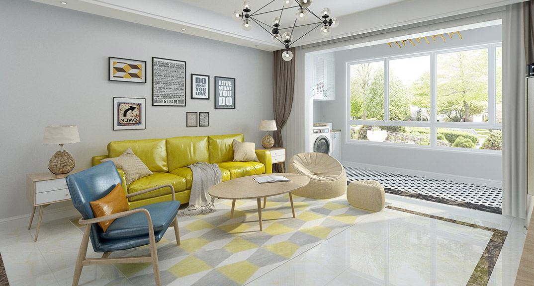 永利國際134㎡三室兩廳客廳北歐風(fēng)格裝修案例效果圖