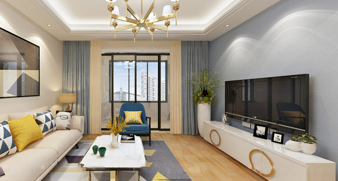 浮來春公館142㎡四室兩廳客廳現(xiàn)代簡約風(fēng)格裝修案例效果圖