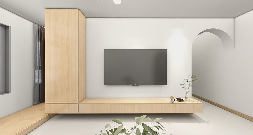 中歐國際城115㎡三室兩廳課堂電視原木極簡風格裝修案例效果圖.jpg