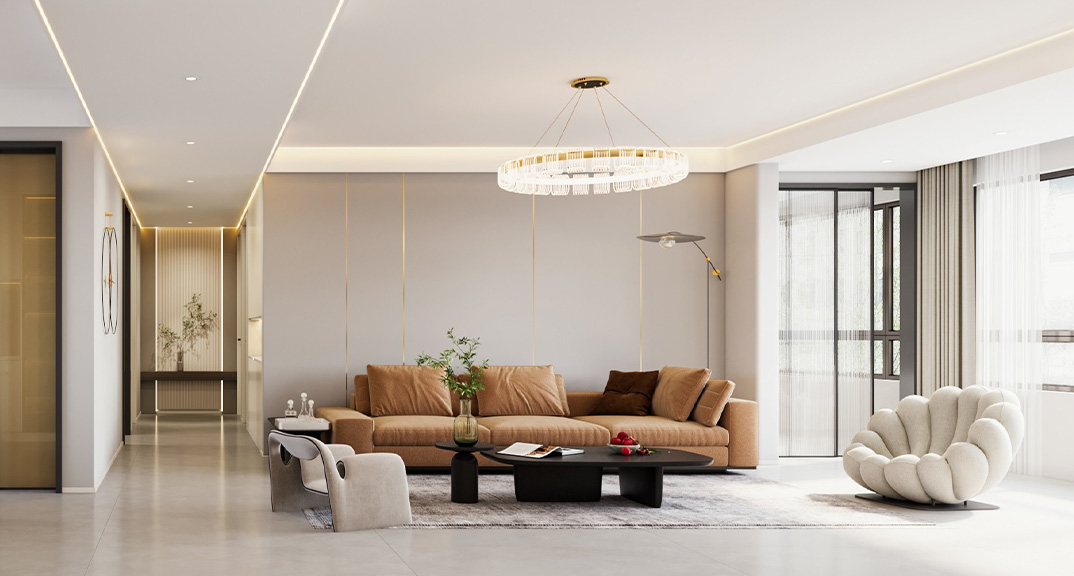 玖熙城160㎡四室兩廳客廳現(xiàn)代簡(jiǎn)約風(fēng)格裝修案例效果圖