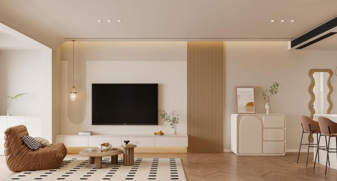 再說客廳位置,原戶型沙發(fā)墻尺寸很小,為了延長(zhǎng)沙發(fā)墻,所以在設(shè)計(jì)上采用了玻璃磚,既達(dá)到了效果,又不影響采光,也是客廳的一個(gè)亮點(diǎn)。陽臺(tái)埡口位置也沒有按照常規(guī)包套線,而是在陽臺(tái)位置做了圓弧造型,看起來就更柔和,也符合了風(fēng)格設(shè)定。