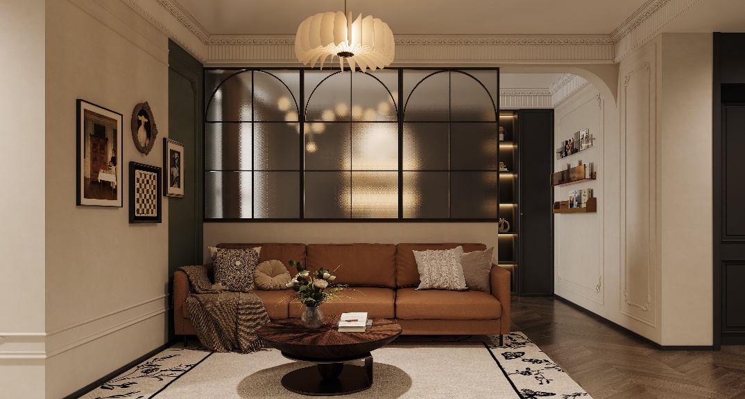 客戶需要書房,考慮到客廳的尺寸,決定在沙發(fā)上后側(cè)作為獨(dú)立的讀書區(qū),既能中和沙發(fā)和電視之間的距離,也可以增加空間的趣味性,用玻璃間隔做到了隱私性和透光性同時(shí)兼顧。