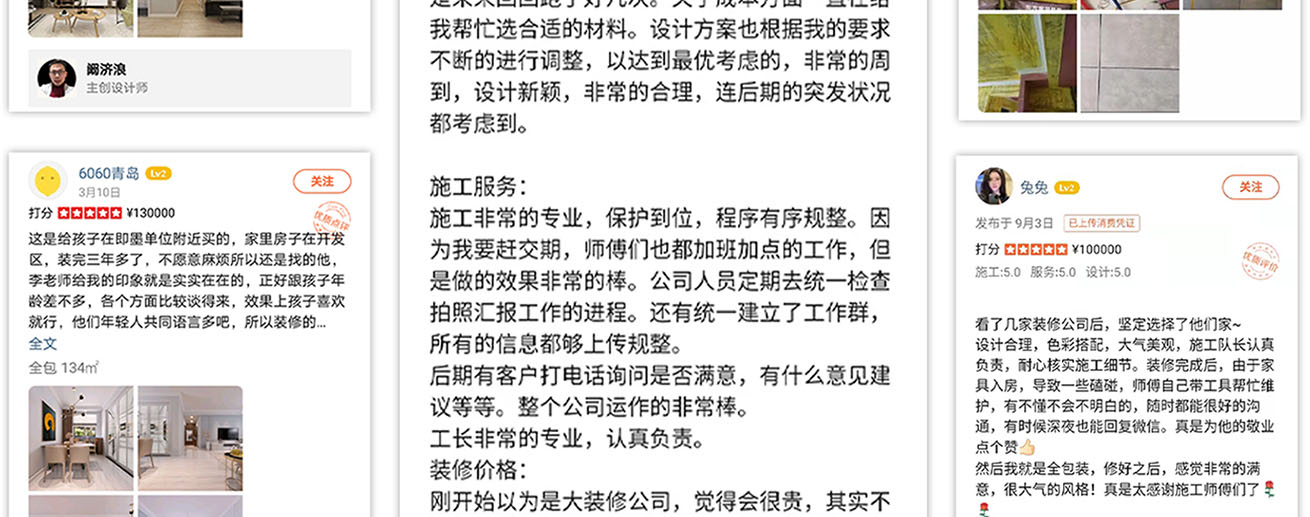 明白客戶的需求,20項(xiàng)終身保修讓您知道,裝修不是一次性的,可以是一輩子的;深知客戶擔(dān)憂,所以承諾0增項(xiàng),裝修花費(fèi)可以完全透明;開通“董事長直達(dá)號”,您的裝修問題可以直達(dá)董事長,讓您知道問題可以有靠譜的渠道解決......