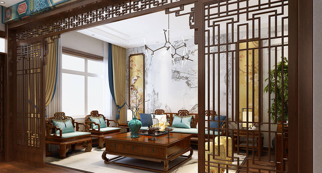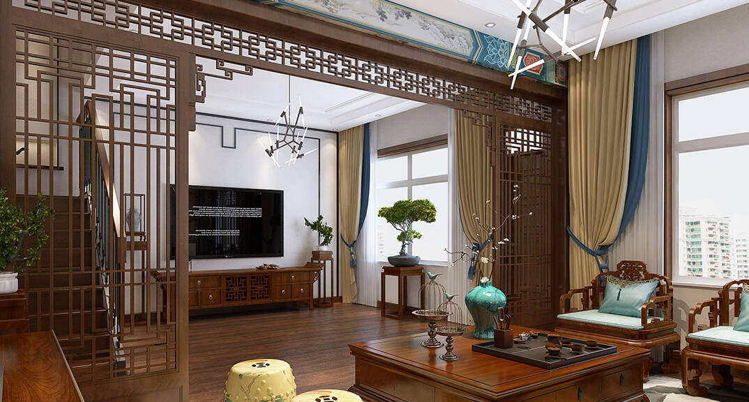 充滿中式韻味的基礎(chǔ)格調(diào),與新元素共生,起居室的設(shè)計(jì)闡述的事千百年來從未易改的東方哲學(xué)進(jìn)階人生。一草一木皆是中國傳統(tǒng)意向的完美再現(xiàn),經(jīng)典又和諧。