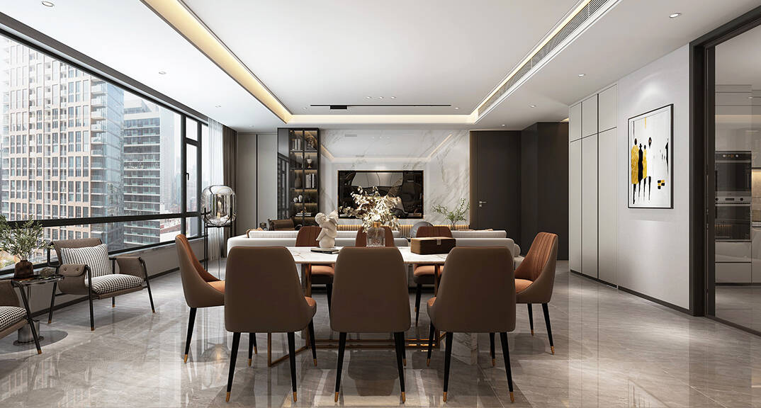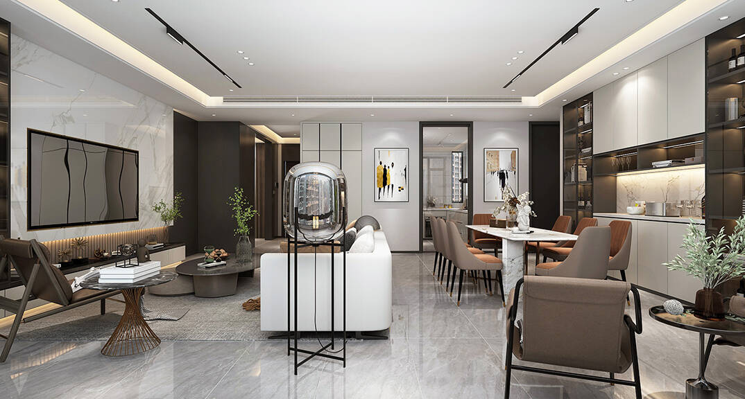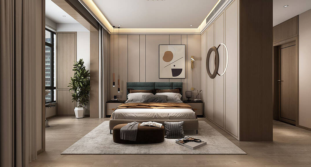 整體簡(jiǎn)歐風(fēng)格在設(shè)計(jì)上用經(jīng)典軸線、對(duì)稱布局的方式,結(jié)合淡雅的空間色調(diào)或幾何線條與典雅時(shí)尚的陳設(shè)軟裝,打造出一個(gè)歐式輕奢的現(xiàn)代主義格調(diào)。