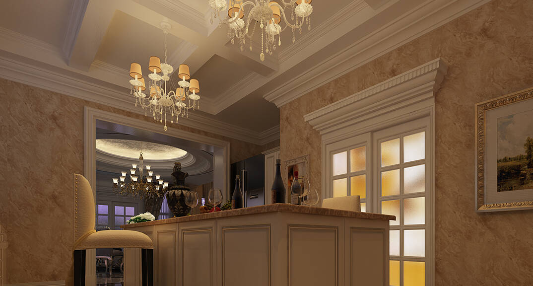 麥島金岸2000㎡別墅一樓廚房簡歐風(fēng)格裝修案例效果圖