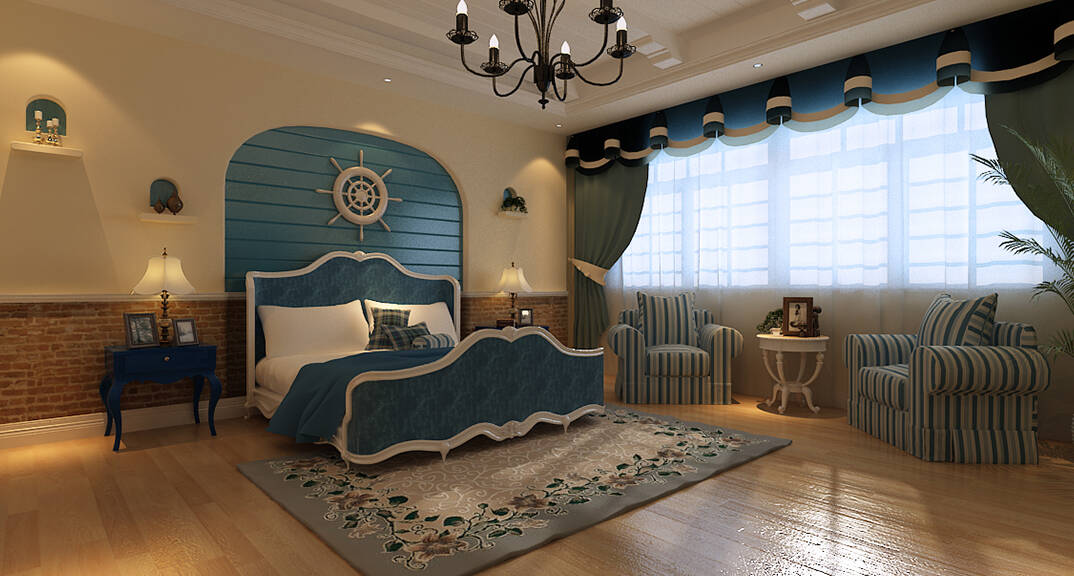 麥島金岸2000㎡別墅二樓臥室簡歐風(fēng)格裝修案例效果圖