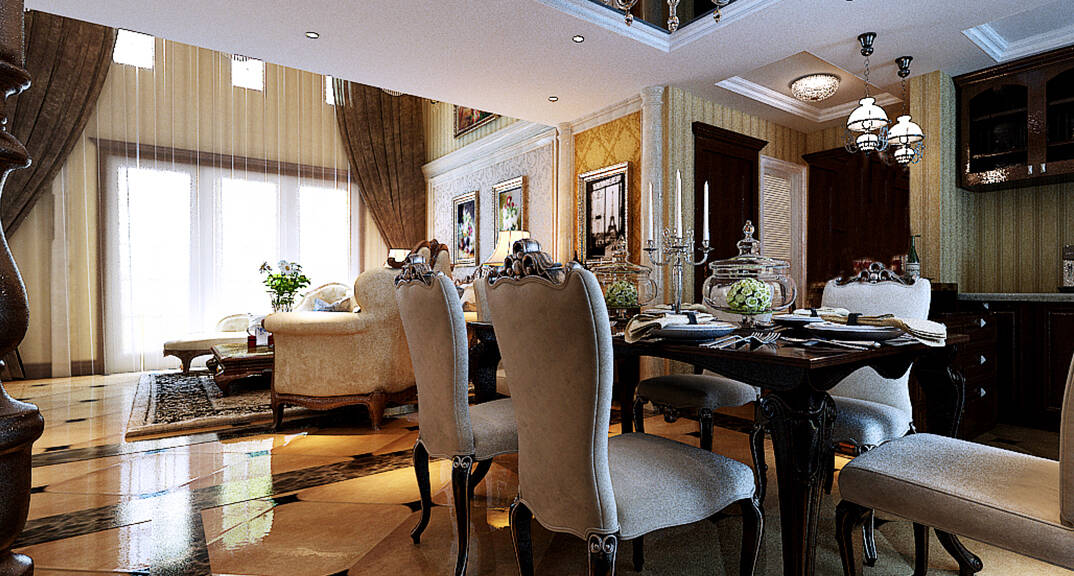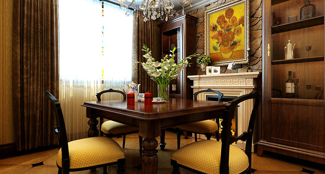中冶圣喬維斯268㎡別墅餐廳美式風格裝修案例效果圖