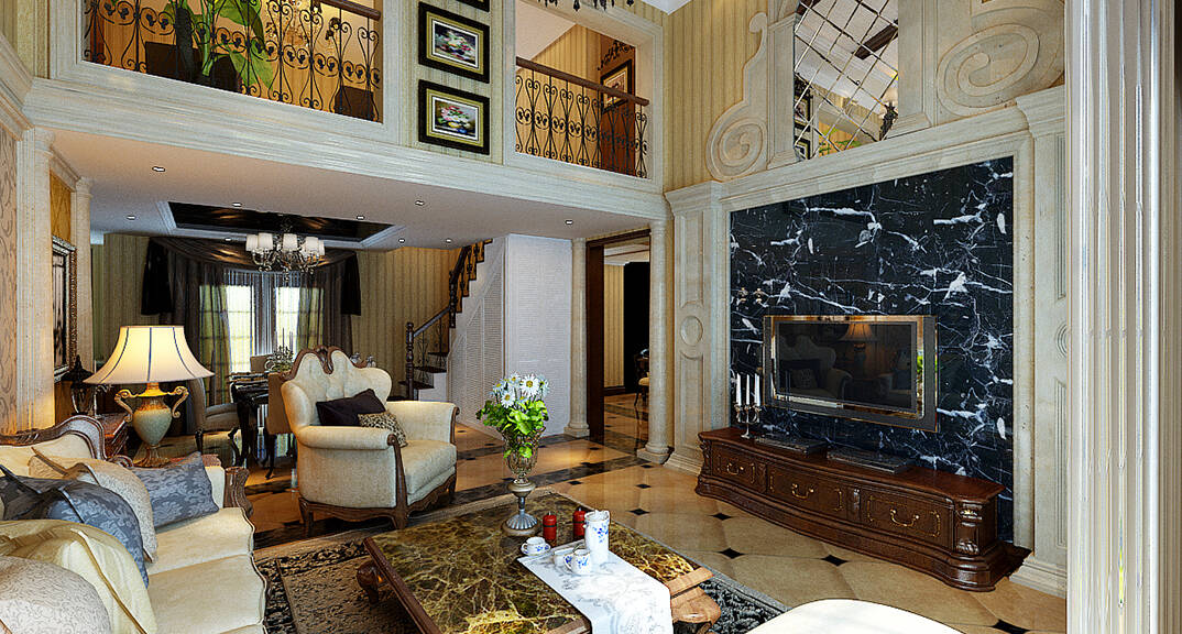 中冶圣喬維斯268㎡別墅客廳沙發(fā)美式風格裝修案例效果圖