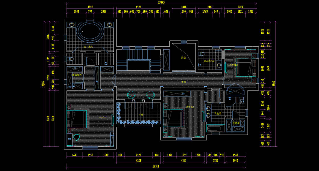 本案例歐式風格的特征是強調(diào)線形流動的變化,將室內(nèi)雕刻工藝集中在裝飾和陳設(shè)藝術(shù)上,色彩華麗且用暖色調(diào)加以協(xié)調(diào),變形的直線與曲線相互作用以及貓腳家具與裝飾工藝手段的運用,構(gòu)成室內(nèi)華美厚重的氣氛。它在形式上以浪漫主義為基礎(chǔ),常用大理石、華麗多彩的織物、精美的地毯、多姿曲線的家具,讓室內(nèi)顯示出豪華、富麗的特點,充滿強烈的動感效果。一方面保留了材質(zhì)、色彩的大致風格,讓人感受盜傳統(tǒng)的歷史痕跡與渾厚的文化底蘊,同時又摒棄了過于復(fù)雜的肌理和裝飾,簡化了線條。現(xiàn)代歐式風格,更像是一種多元化的思考方式,將懷古的浪漫情懷與現(xiàn)代人對生活的需求相結(jié)合,兼容華貴典雅與時尚現(xiàn)代,反映出后工業(yè)時代個性化的美學(xué)觀點和文化品位。