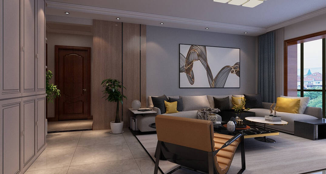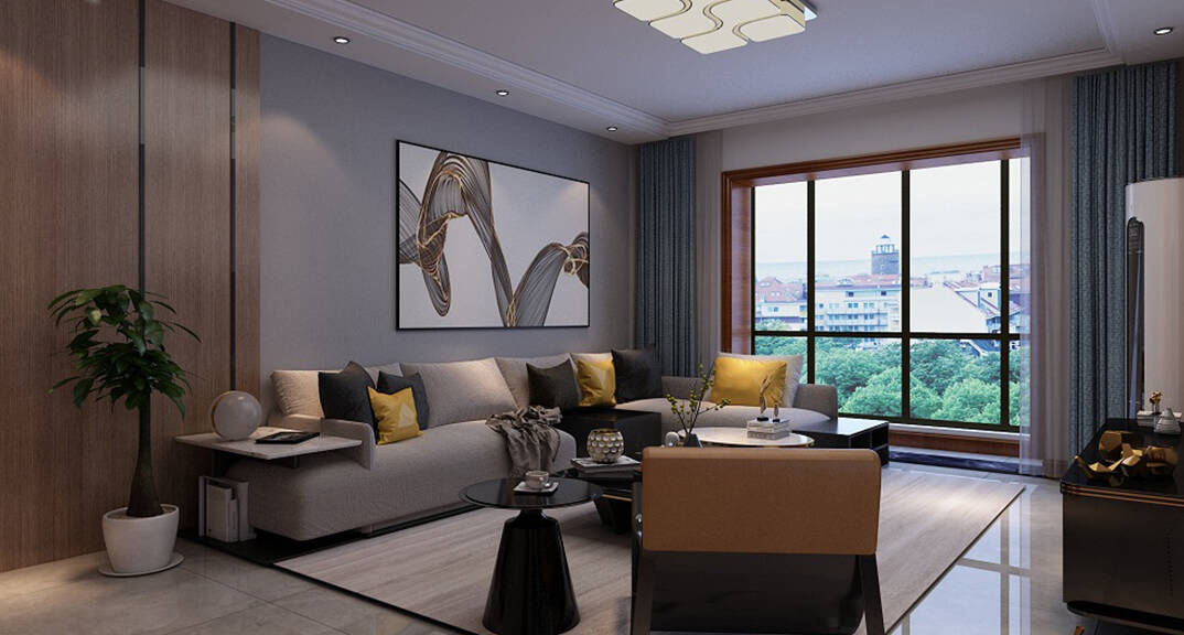 悅海地3室2廳100平美式風格裝修客廳沙發(fā)