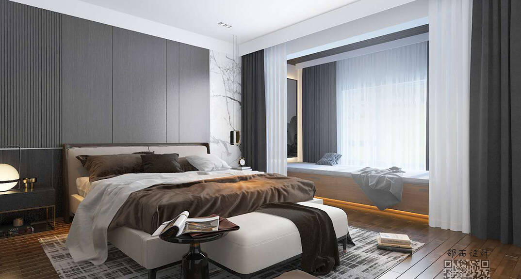 萊頓小鎮(zhèn)·海語墅250㎡別墅下疊二層主臥現(xiàn)代簡約風(fēng)格裝修案例效果圖