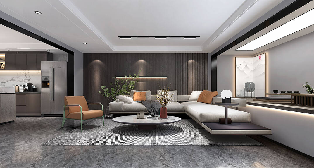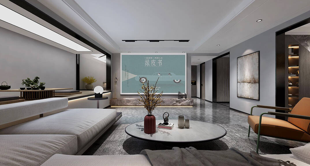 三盛國際海岸140㎡下疊客廳現(xiàn)代風(fēng)格裝修案例效果圖