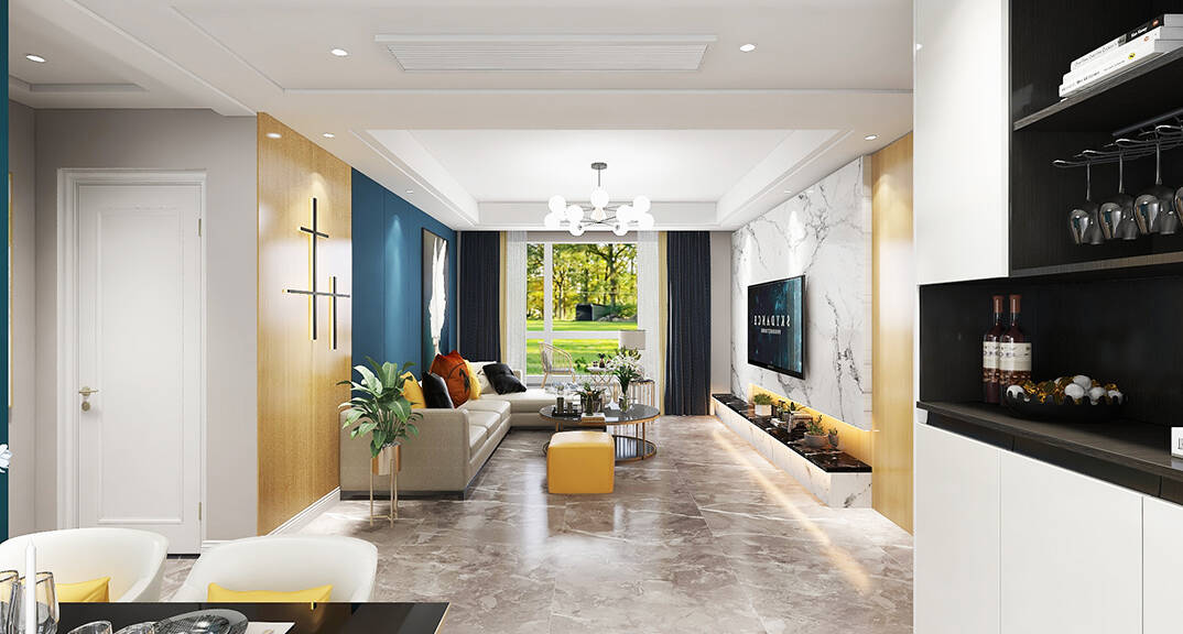 膠州機場公寓118㎡三室一廳客廳簡約風(fēng)格裝修案例效果圖