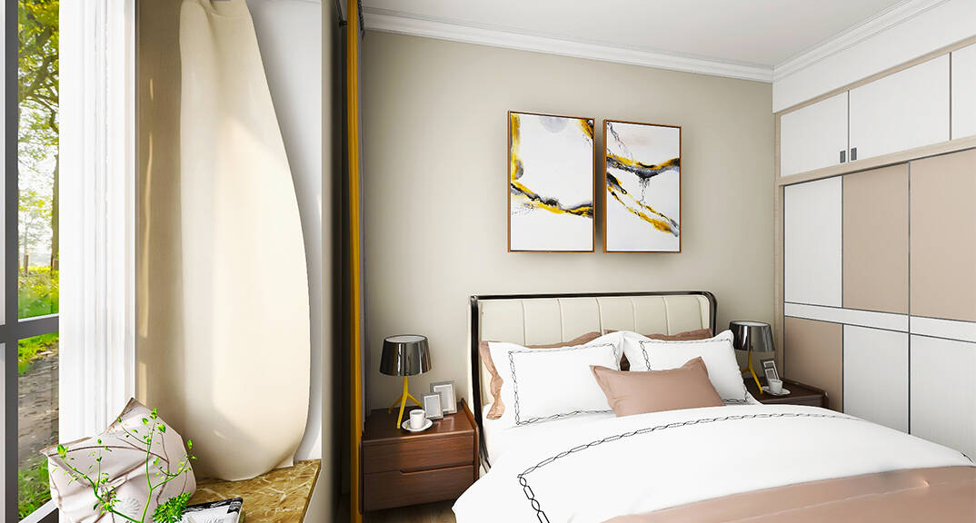 膠州機場公寓118㎡三室一廳次臥簡約風(fēng)格裝修案例效果圖