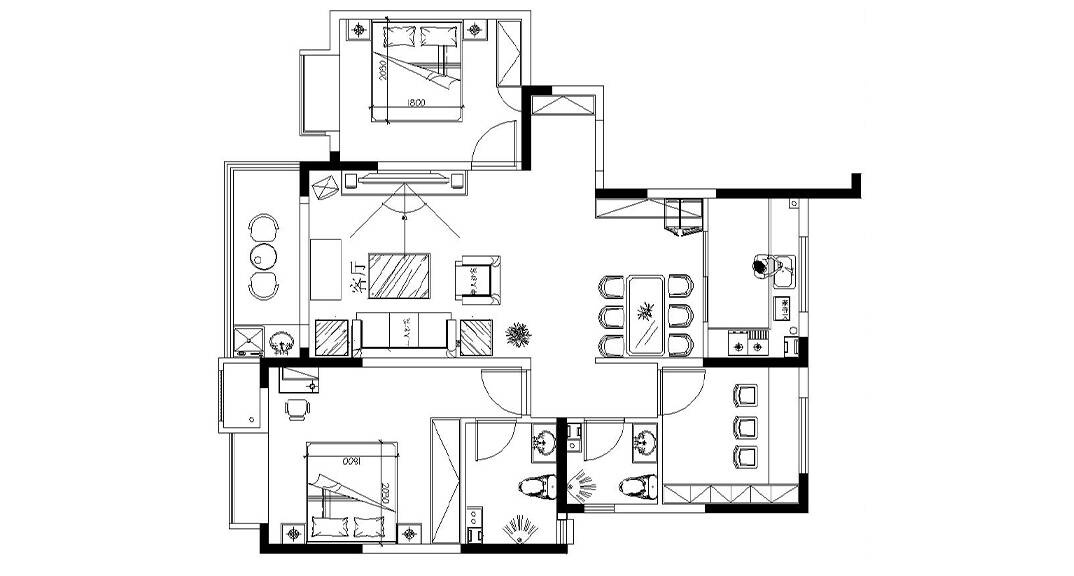 膠州機場公寓118㎡三室一廳簡約風(fēng)格裝修戶型設(shè)計圖