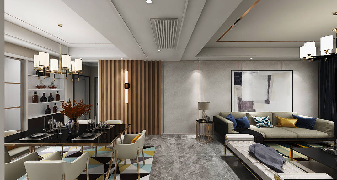 膠州機(jī)場公寓138㎡二室一廳客餐廳輕奢風(fēng)格裝修案例效果圖