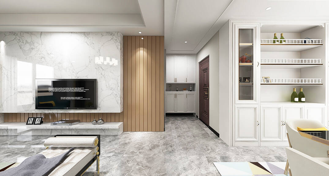膠州機(jī)場公寓138㎡二室一廳客廳輕奢風(fēng)格裝修案例效果圖